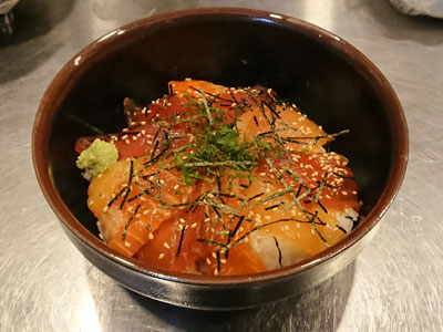 数種類の海鮮を使って醤油ベースの出汁で漬けています。お好みに合わせてタレをかけてお召し上がりください。