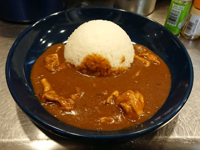 チキンとニンジンをコトコト煮込んだカレーになります。ご飯の大盛りは事前にお伝えください。